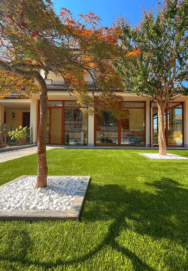 Luxury è la soluzione giusta per chi vuole il massimo dalla propria area esterna, senza dimenticare l’eco-compatibilità. La realizzazione del vostro giardino può essere integrata dall’utilizzo di complementi come cordoli perimetrali in cemento o in pietra, granulati e pietrisco per riempimenti, creazione di aiuole e aree dedicate.